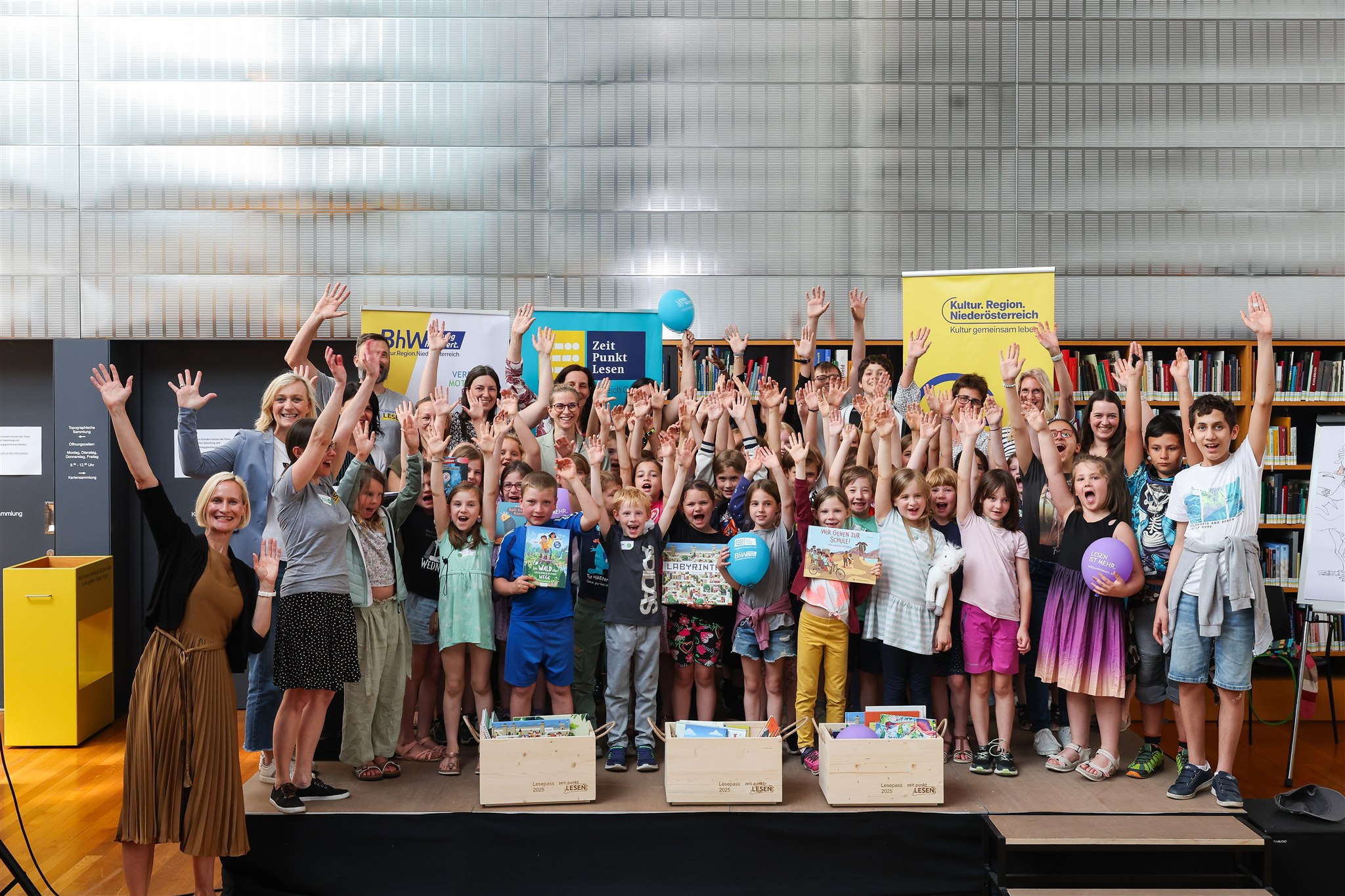 Ein besonderer Tag für unsere Gewinnerklassen: Die ASO Gänserndorf, die Volksschule Gutenstein und die Volksschule Türnitz wurden zur Lesepassfeier 2025 nach St. Pölten eingeladen. In der Niederösterreichische Landesbibliothek erwartete sie eine mitreißende Lesung von Michael Roher, der mit seinen Geschichten für viele begeisterte Zuhörer sorgte. Beim anschließenden Nachmittagsprogramm wurde gemeinsam gelesen, gelacht und entdeckt – ein rundum gelungener Tag im Zeichen der Lesefreude.