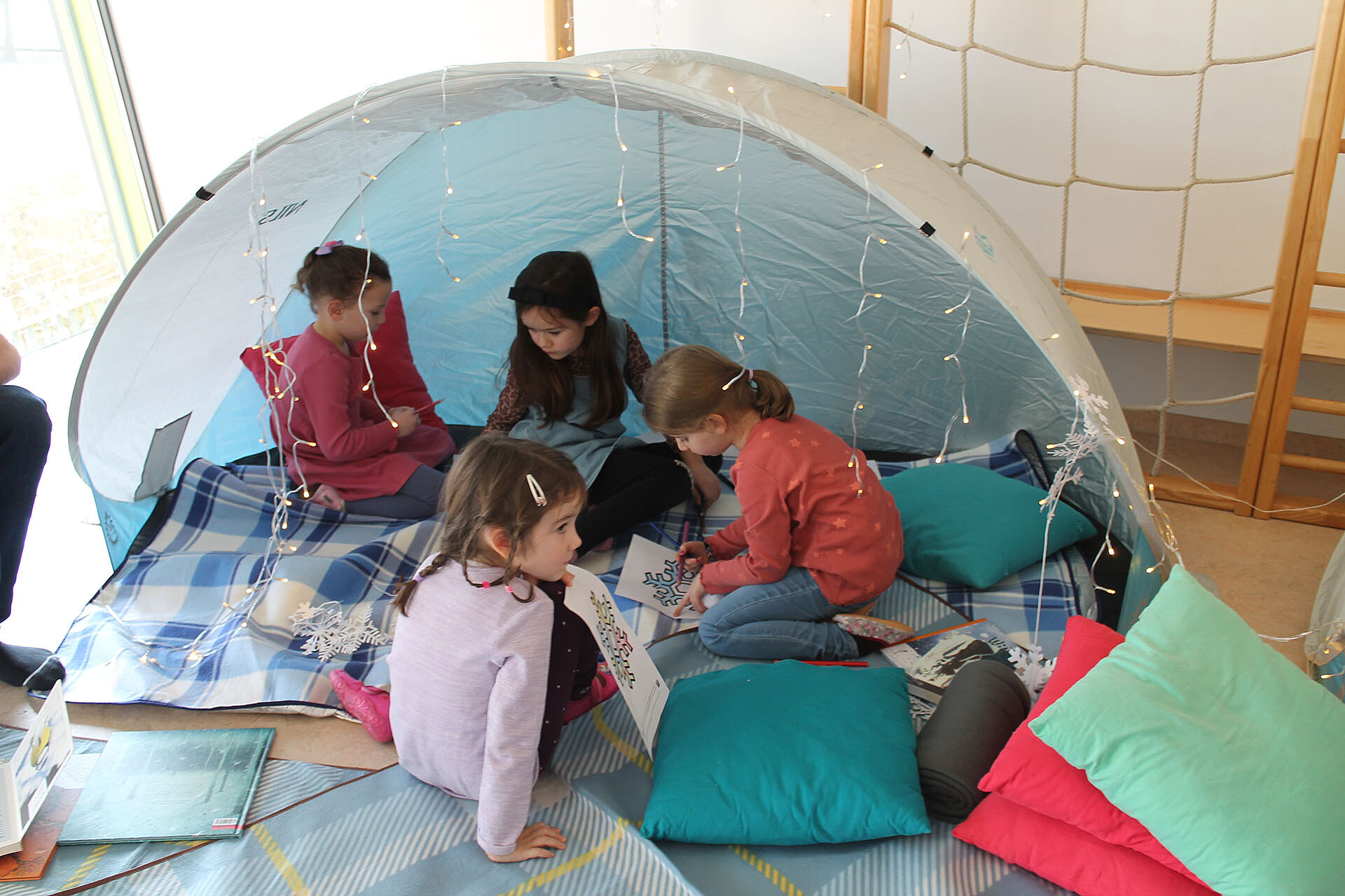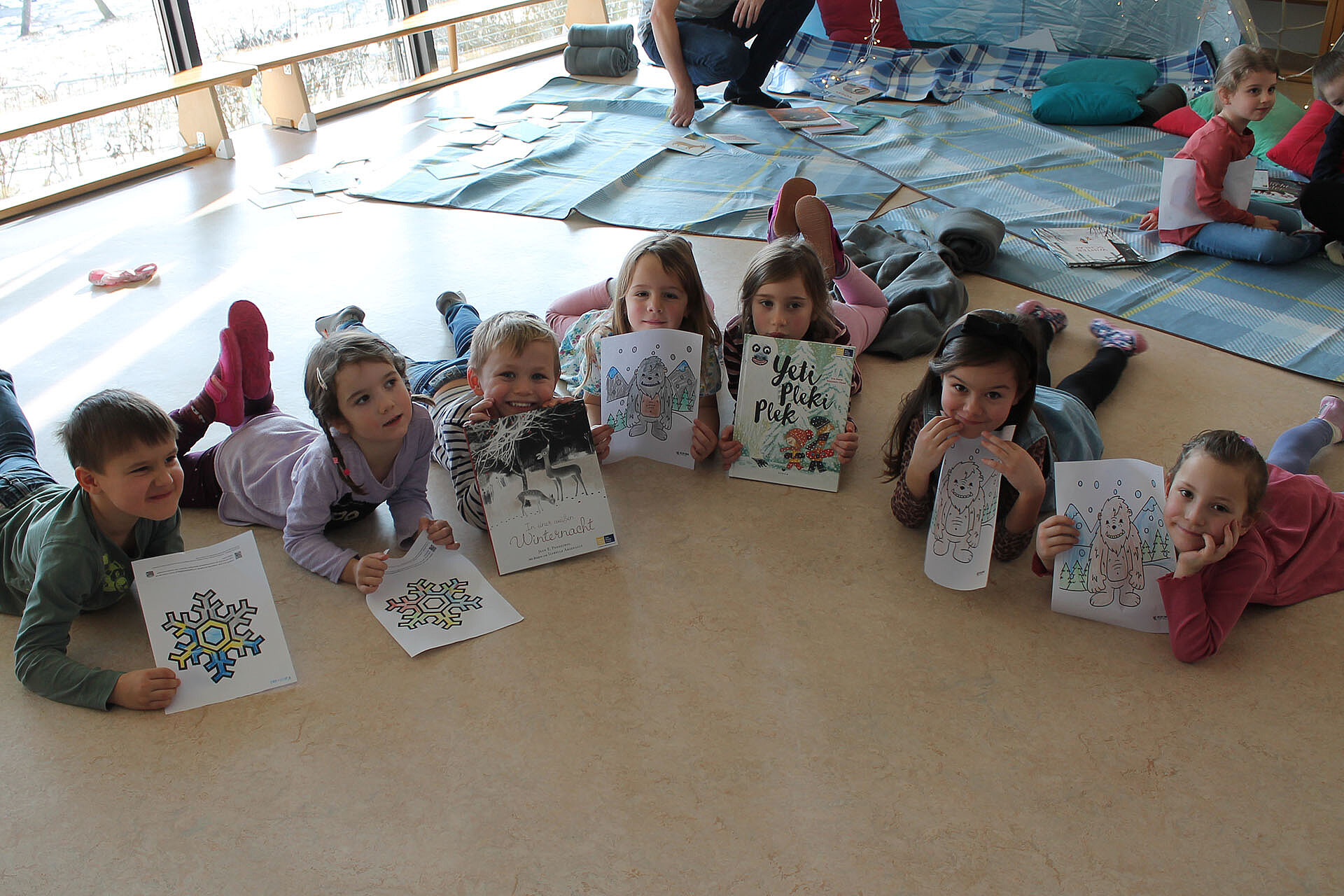 Am 22.1. waren wir zu Gast im Landhauskindergarten für eine winterliche Vorlesestunde und konnten dabei auch unser Materialpaket Winter-Lesepicknick live erproben. Das Feedback von den Kindern war jedenfalls ausgezeichnet: von den Büchern bis zu den Schneebällen fand alles großen Anklang!